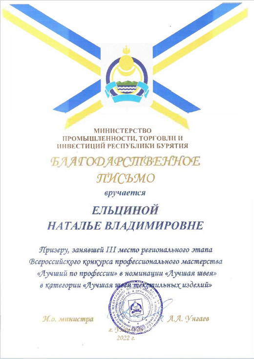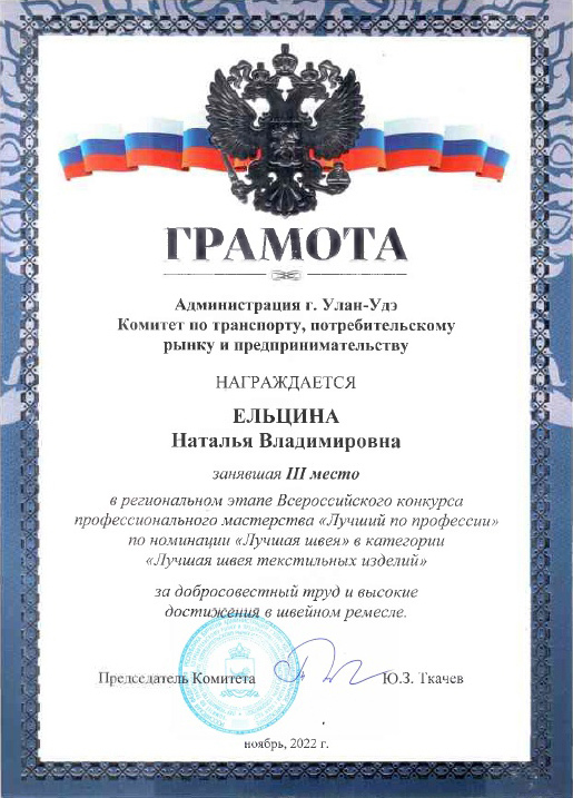 Благодарю за возможность обучаться в вашем центре, погружаться в мир шитья и творчества!